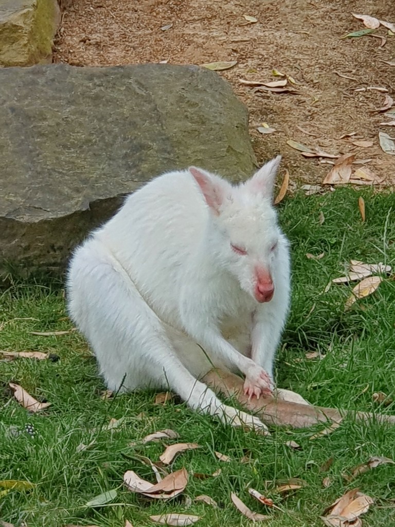 Gumbuya had an excellent collection of beautiful native birds including various species of cockatoo, and we loved the albino peacock. So majestic, this was surely the Fabio of the bird world. As mentioned in other posts, I am not a fan of animal parks in general, but felt Gumbuya World did a great job ensuring the animals had lots of space, and had not overcommitted to a ridiculous amount of creatures at the expense of their welfare. We saw a couple of albino wallabies which was a new experience for me. I suspect these animals were deaf and blind, and so Gumbuya gives security from predators which would not be the case in the wild.
